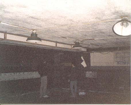 Next came the main plotting room. Nothing was left, except sloped counter tops for writing notes, apparently. The ceiling was acoustic tiling. Next was a big room, about 20'x30', with black acoustic tiling on the walls.