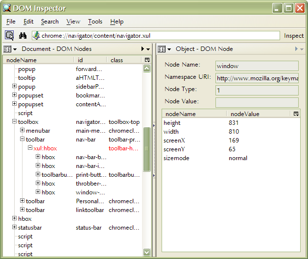 It started when I discovered the useful DOM inspector that got included with Mozilla. It can, among other things, show the tree of elements that the Mozilla user interface consists of, giving some insight in how it works. After some experimentation with userChrome.css, a file to modify the look of this interface, I started to examine the skin file itself and replace some of the images. I already knew CSS well after previous attempts to design web pages.