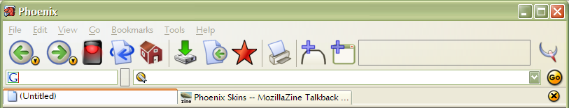 Because Mozilla is so big, including a mail/news client and more, my modifications never got complete enough to make it worth distributing. Then Phoenix came, a browser based on Mozilla's rendering engine and user interface language (XUL), but with a better design and without the extra components. I eventually decided to make a more or less complete theme for this browser, starting out from what I had made for Mozilla.